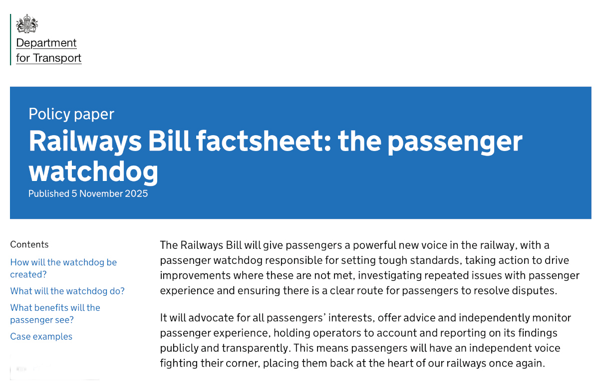| Railways Bill 2025 - proposed New Passenger Watchdog Posted by grahame at 15:36, 5th November 2025 | ![]() ![]() ![]() |